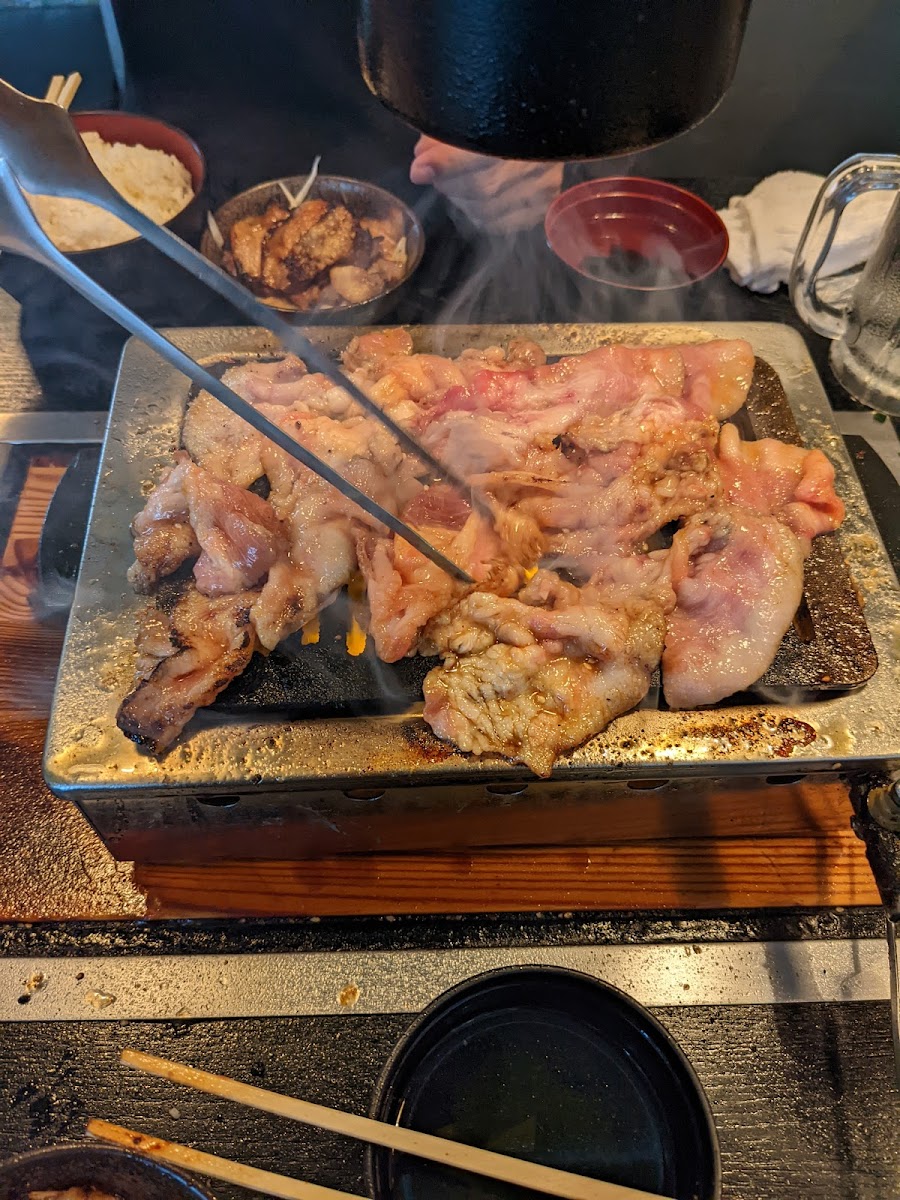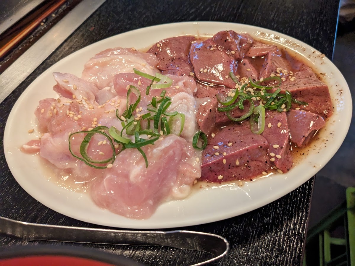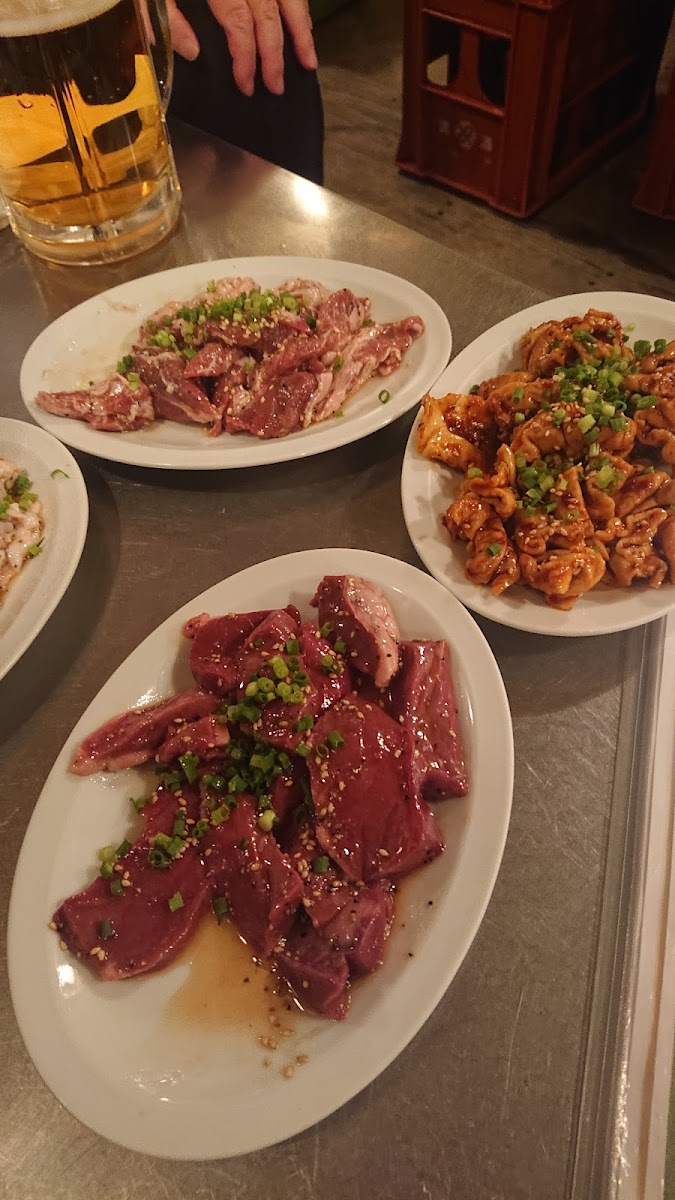 **11:30~14:30 all you can eat for 45 minutes for ¥1000 (cash only for lunch). i discovered this restaurant through mike's channel. the quality of meat for this price is exceptional, so it's no surprise there's always a queue for the lunch ayce. you start by choosing A, B, or C for your first plate, and after finishing, you can pick anything you like. i absolutely love the liver (レバー), but it sells out quickly. your meal includes rice, onion salad, and soup. the last order is taken 10 minutes before your time is up, and you must leave by the end of the 45 minutes. i saw a couple who stayed longer, and the staff took away their grill. they are very strict about the dining time.